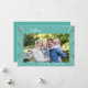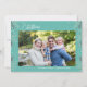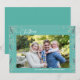 "Celebrate the season with a personalised touch! This custom holiday card showcases your family's cherished photo, family name, and the year. It's perfect for spreading holiday cheer to loved ones near and far. Printed on premium quality paper, this card is both stylish and durable, ensuring it becomes a keepsake for years to come. Modern design with mint green background and Festive Christmas foliage.