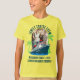 The t-shirt feels and looks great quality, a good thick cotton. It will be a little big for my son, but that means he will be able to wear it and not out grow it too soon. The print was as described on the order when personalised. True size, shape and colour T-shirt- thanks.