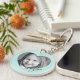 Light aqua blue or custom colour keyring featuring your photo inside a heart with the name in a handwritten style script font.