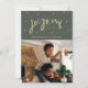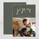 Send your warmest wishes in style this holiday season with our Green and Gold Joyeux Noël Family Photo Holiday Card. Adorned in a rich hunter green, the front of the card is an ode to the traditional colours of Christmas. The elegant gold accents add a touch of sophistication, making it truly stand out. The phrase "Joyeux Noël" in beautiful gold script takes centre stage, surrounded by delicate holiday motifs and festive ornaments.