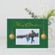 Family Photo Merry Christmas Calligraphy Green Holiday Card