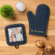 Family Photo Personalised Modern Christmas Plaid Oven Mitt & Pot Holder Set