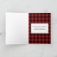 A beautiful red buffalo plaid, folded holiday card with "Merry Christmas" calligraphy script, your family name, year or other text and your family photo. Personalise your message on the back of the card for the perfect touch.