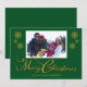 Snowflakes family photo calligraphy "Merry Christmas" design green Christmas card. You can customise this card to add your family name and photo to replace the sample photo. This card is designed so you can also change the colour of the green background as well as the colour of the "Merry Christmas" graphic and snowflakes too if you like.