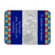 What better way for proud grandparents to show off their grandchildren than with a photo of the the family on a flexible fridge magnet, framed by a deep blue background, and brightly coloured patchwork pattern. Handpainted design by Judy Adamson.