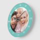 Create a special one of a kind round or square wall clock. The personalized clock design features simple modern fonts overlaid onto your full bleed family photo. A custom clock is a unique Christmas gift idea for grandparents, new parents or a fun housewarming gift for newlyweds decorating their first home together.