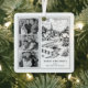 This elegant black-and-white Christmas ornament features a beautifully illustrated winter village, evoking the quiet charm of a storybook scene. Delicate linework captures snow-covered rooftops, pine trees, and a winding stream beneath a stone bridge, all bathed in a soft, vintage glow. A slender church steeple watches over cozy cottages, while distant mountains fade into a dreamy horizon. The design is airy and serene, inviting warmth and nostalgia. Below the illustration, you can personalize the “Merry Christmas” message and sender names. On the left, add three family photos, automatically filtered in black and white to match the theme.