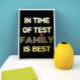 "IN TIME OF TEST FAMILY IS BEST" Burmese proverb and red heart black print.
