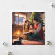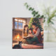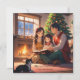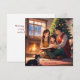 A personalised Christmas Card featuring a family reading a book in front of their decorated room, complete with a fireplace and a Christmas Tree.