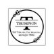 This rubber stamp features a monogram, a family name and address with a round border.