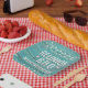 This family reunion annual BBQ rustic blue green design features a wood background with string lights and grill graphics. This napkin design is perfect for family reunions barbecue parties. Enjoy your barbecue!