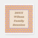 These napkins feature a pattern of blue circles against a beautiful peach background covering the napkins in a polka dot pattern. Each circle gradually moves from lighter to darker as your eye moves down the circle. A large square in the centre provides the background for your family's name and the year.
