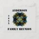 Are you looking for a unique family reunion announcement or invitation that is out of this world? Check out this artistic kaleidoscope reunion postcard featuring a distinctive gold, blue, and black celestial abstract design in the centre. Your family's name and year accompany this design. All text can easily be personalised to create an invitation postcard as unique as your family.