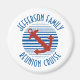 Find your cruise mates stateroom by adding these magnets to your cabin doors. Customise family name and other text on this nautical anchor design in blue and red. Also makes a keepsake memento to bring home after the cruise.
