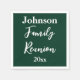 These family reunion napkins are dark green. They have white text. You can use it to show a custom message such as your family's last name and the year you're having the family reunion. (Shown: Johnson Family Reunion 20xx) The words family reunion are in a script.