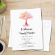 This Family Reunion invitation postcard is decorated with a watercolor family tree in shades of rust and red.