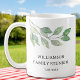 This family reunion keepsake mug is decorated with watercolor greenery.