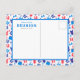 Festive red, white and blue swimsuit and flip flop background for your summer family reunion. Lots of room for adding your details.