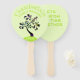 This fun hand fan is designed for a family reunion featuring a trendy black tree and multicolor flowers centred with party details above and below. The text and background are in shades of green. Fill in the template fields with the party details, remove any text or click customise to select a font colour, size, and style your prefer.