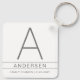 Personalised Family Reunion Favour Keychains with large initial, family name, and reunion date in a minimal and modern simple design in grey and white.