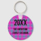 Create a unique keepsake for next your family reunion with this vibrant, tie-dye style keychain. This keychain features a neon pattern of pink and blue along with your family name and year.