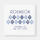 each shape containing a letter to spell out FAMILY REUNION in capital letters. There is a template for the family name and the year or custom line of text in navy blue. As shown, the shapes alternate with two trendy shades of light and dark blue, but ALL colours in this design may be customised including the background colour, geometric shapes, AND the colour of the text inside them making this design great for any choice of colours that represent your family's personality! Please use the Zazzle message feature to contact me if you have any questions.