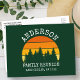 Rustic Pine Trees Summer Retro Sunset Family Reunion Forest Green Invitation Postcard. Great for family reunion vacations from camping in the mountains to a vacation at the family cabin in the woods by the lake.