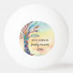 This ping pong ball features a family tree in the colours of the rainbow and watercolor background.