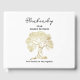 Document the attendees at your next family reunion when they leave messages for future family members to read. This guest book cover design features a minimal tree and old gold tree art. Fill in the personal information template fields, remove any text or edit using the design tool to select a font colour, size, and style your prefer. A simple long lasting family reunion memento.