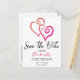 Send off the "Save The Date" announcement for a family reunion or other special occasion featuring linked orange and pink heart art on both sides. Personalise the front and back text in the template fields or click customise to select a font style, size, and colour you prefer.
