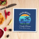 Family Reunion Summer Beach Palm Trees Sun Retro Style Navy Blue Paper Napkins. Great for family reunion vacations from camping on the beach to a boat cruise. Personalise with your family name, location, year or date and more.