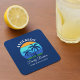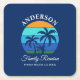 Family Reunion Summer Beach Palm Trees Blue Square Paper Coaster
