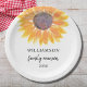 This family reunion paper plate is decorated with a yellow watercolor sunflower.