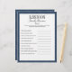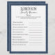 Enjoy playing this fun, trivia questions game at your next family reunion. Answer or guess the family member(s) name for the questions that can be customised. Blue damask background.