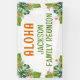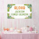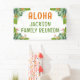 Welcome family members to your tropical or Hawaiian Luau themed Family Reunion with this banner sign featuring watercolor tropical palm leaves and flowers and your custom text in your choice of font styles and colours. The sample shows ALOHA and NAME FAMILY REUNION. BANNER OPTIONS: The sample is shown in the 3x5' size; other sizes are available on the ordering page as well as the option of transferring the design to a foam board, poster, tapestry or other product or have the designer convert it to a DIGITAL DOWNLOAD file BEFORE ordering to print locally. ASSISTANCE: For help with design modification or personalisation, resizing, colour change or if you would like coordinating items, contact the designer BEFORE ORDERING via the Zazzle Chat MESSAGE tab below or email makeitaboutyoustore@gmail.com.