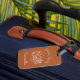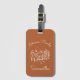 Cool fully customizable luggage tag design with solid color background with a fun and bold script typography. It also freatures a camp site and is perfect for a family trip for matching luggage tags on a camping adventure or a glamping vacation. Modern elegant design, you just need to add your initials.