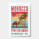 Stylish Group Family Vacation ID Badge with CUSTOMIZABLE TEXT, featuring colourful vintage sunset design with camels and trees. In the top left hand corner, there is the Moroccan flag in the shape of a heart. The text is bold grunge sans serif typography, with family name and year. The Latin phrase says VENI VIDI AMAVI, which means I CAME, I SAW, I LOVED. On the back you have up to 7 lines for your contact details and group information. ALL TEXT IS CUSTOMIZABLE so you can make this totally PERSONALIZED for your family or group. Matching gifts and Marrakech version available. Contact me for design queries.