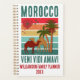 Plan your vacation highlights in this stylish Group Family Vacation Planner with CUSTOMIZABLE TEXT. The design features colourful vintage sunset with camels and trees. In the top left hand corner, there is the Moroccan flag in the shape of a heart. The text is bold grunge sans serif typography, with family name and year. The Latin phrase says VENI VIDI AMAVI, which means I CAME, I SAW, I LOVED. ALL TEXT IS CUSTOMIZABLE so you can make this totally PERSONALIZED for your family or group. Matching gifts and Marrakech version available.