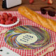 Go bright and vibrant for your next family reunion with these paper plates. The background is a vivid swirl of colour with a large solid circle for your text. Easily and quickly personalise these plates to add a special touch to your annual dinner or picnic.