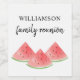 This Family Reunion Wine Bottle Label is decorated with watercolor summer watermelons.