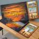 Personalise on the product page or click the "Customise" button for more design options. The design created from my painting “Sunset Plaza Marina 2584” captures a vibrant sunset with streaks of orange and red colours filling the sky, framed by silhouetted vegetation and flowering plants in the foreground. The bright hues of the sky contrast dramatically with the dark outlines of the landscape, creating a serene yet dramatic scene. Matching products are available in this collection.