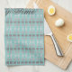 A kitchen or bath, or bar towel with teal patterned design which can be switched to any colour to coordinate with your home decor. The family time text can be personalised to any message or text is removable. Personalise for a custom family gift idea.