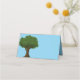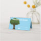 You can customise your sky blue family reunion place cards with personalised white text. A tree is on the back and front of the cards. The word 'table' appears next to a line for the table number.