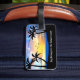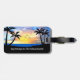 Family vacation custom luggage tags designed with a tropical beach sunset silhouette and name space for your family name helping distinguish your luggage from the rest at the airport or on the go.
