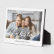 The perfect special memories family photo home accent piece to capture your families special memories. Modern minimal family photo plaque features a large single photo layout to display your families photo with "family" overlay in a white brush script typography, clean white frame with personalised family name.