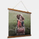 Create a custom hanging wall tapestry to celebrate your family. "family" overlays your photo in a stylish white script with swashes. Add your name in simple white typography.