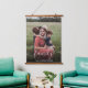 Create a custom hanging tapestry to celebrate your family. "family" overlays your photo in a stylish white script with swashes. Add your name in simple white typography.