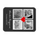 Add 4 of your favourite photographs to this personalised flexi magnet. Four square cropped images are framed nicely in simple white squares, with a small red heart outlined in white in the centre and flowing white handwriting script style text on the bottom that says family. Perfect for instagram photographers. Sample photos are public domain or purchased graphics used for example only, replace with your own.