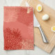 Kitchen towel in an underwater pattern of overlapping fan coral in shades of pastel to deep coral orange on a medium coral orange background