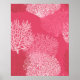 Print in an underwater pattern of overlapping fan coral in shades of pastel to deep coral pink and white on a medium coral pink background